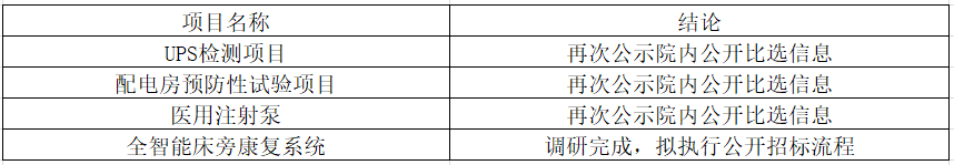 以上是宁波市第九医院议标项目的院内评议结果,现予以公示,如相关单位对上述结果有异议,请在三个工作日内以书面形式向我院纪检监察室提出质疑,联系人:戎主任 徐老师 联系电话:0574-55012967 ,书面质疑文件应有法定代表人签字并加盖公章。如在公告期限内无异议,预中选单位确认为中选单位,不另行公告。